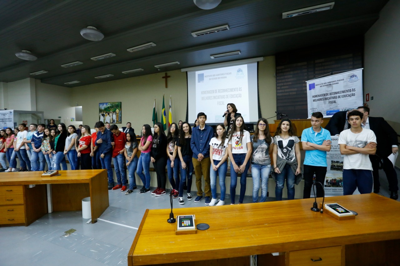 Na ocasião, foram premiados quatro municípios: Pérola com o tema “A cidade que temos e a cidade que queremos”, cujo projeto foi desenvolvido no Colégio Nestor Victor; Maringá com o tema “Educação Fiscal e os atuais desafios na formação cidadã”, executado pela Secretaria Municipal de Educação; Pitanga com o projeto “Trilhas do Saber Tributário” (Instituto Federal de Tecnologia do Paraná); e Quarto Centenário com o tema “Cidadãos do Futuro, Projeto Banco Estudantil”, pela Secretaria Municipal de Educação.