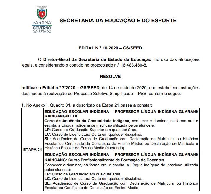 A Secretaria de Estado da Educação e do Esporte (Seed) disponibilizou nesta quinta-feira 14/05 o edital de orientações para inscrição no Processo Seletivo Simplificado (PSS) emergencial, conforme acontece anualmente.